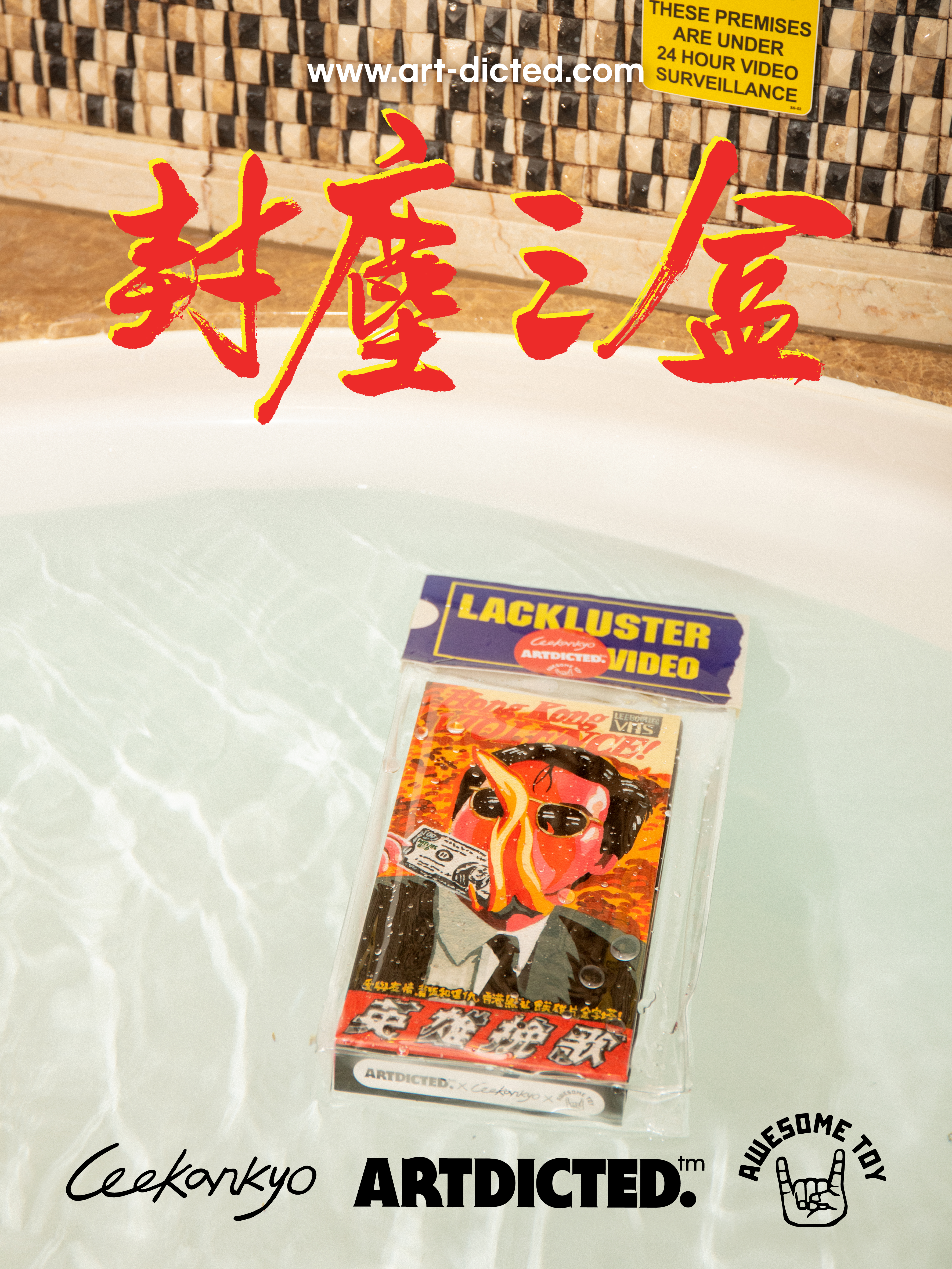 The videotape itself is a squeaky toy made from soft vinyl (Sofubi) and each version comes with its original designed packaging. Each videotape also comes with a custom-made PVC bag and a LACKLUSTER Video header card.
